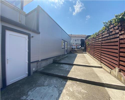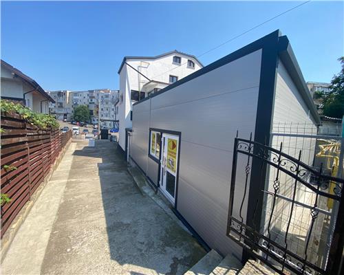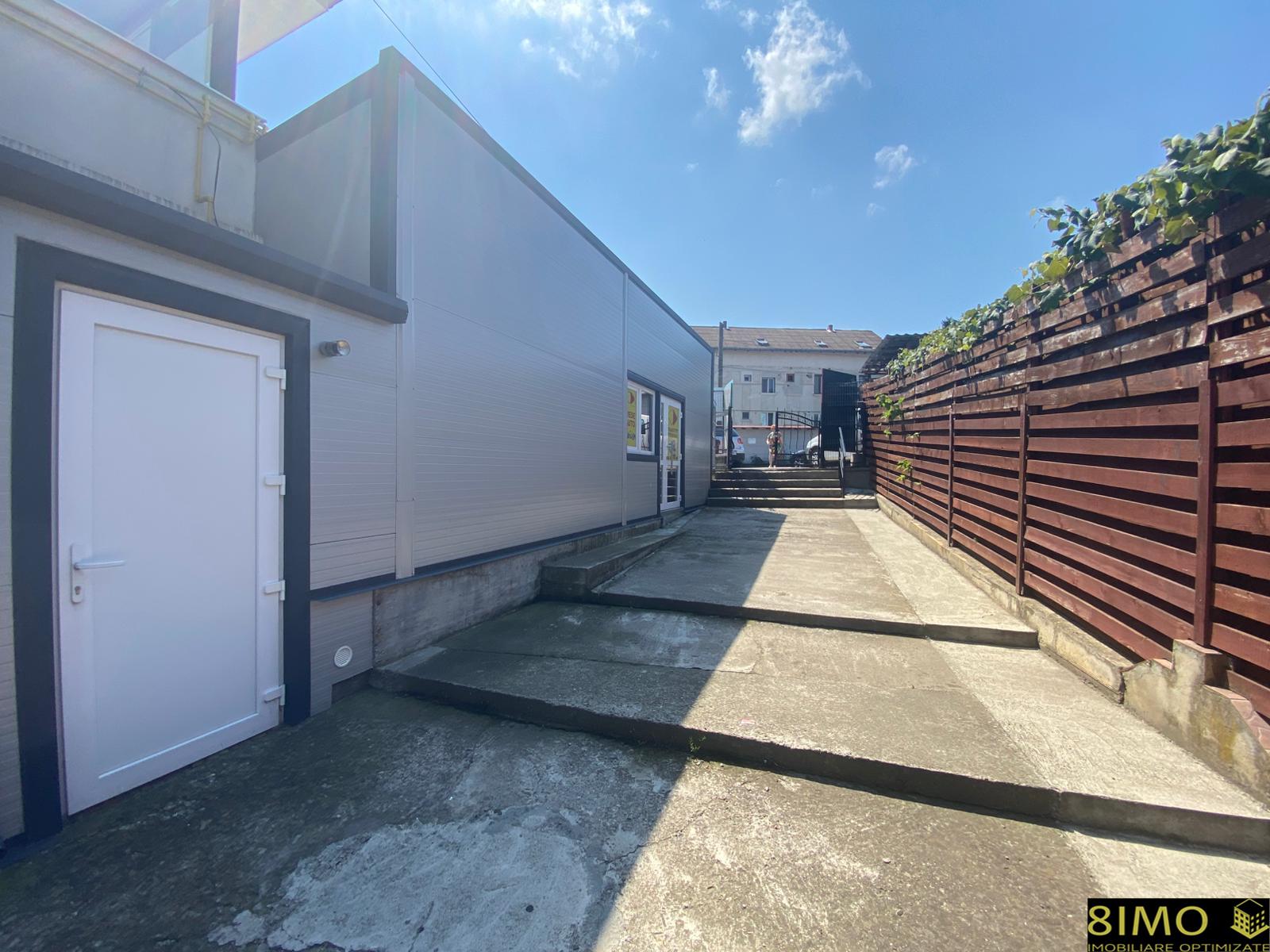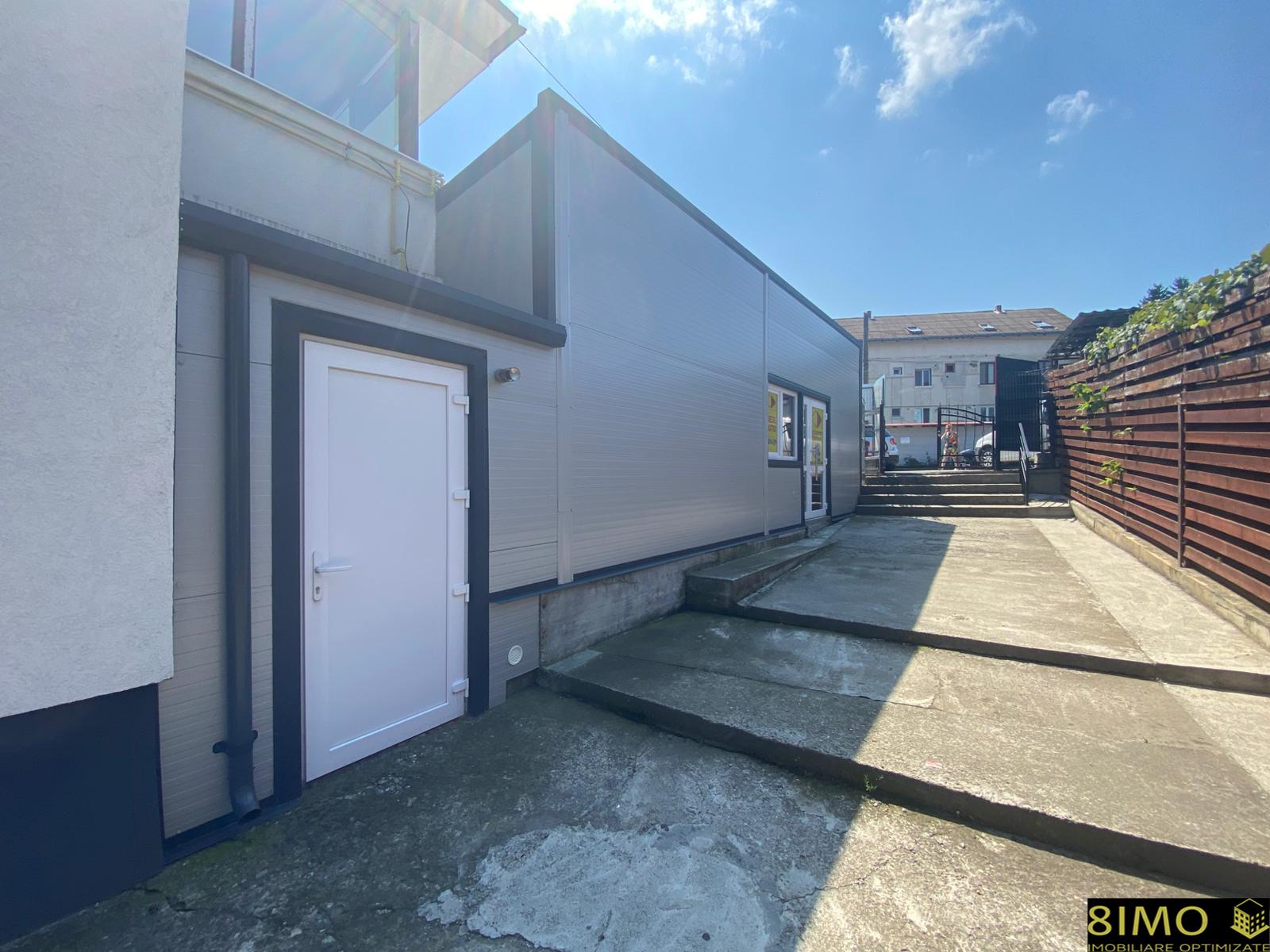 Imobilul din panouri sandwich este situat in imediata apropiere a pietei agroalimentare si beneficiaza de acces direct din parcarea de unde pleaca microbuzele spre satele din jurul Falticeniului – un flux constant de potentiali clienti.